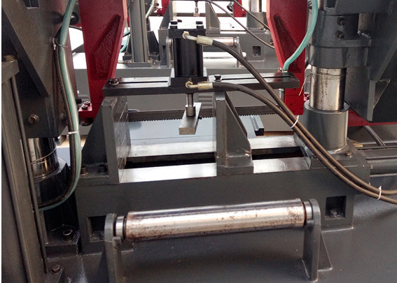 鋸床主要部件有:底坐、床身、立柱、鋸梁和傳動機構(gòu)、導(dǎo)向裝置、工件夾緊、張緊裝置、送料架、液壓傳動系統(tǒng)、電氣控制系統(tǒng)、潤滑及冷卻系統(tǒng)。其操作簡單耐用,液壓系統(tǒng)和減速機均選用優(yōu)質(zhì)廠家提供,質(zhì)量穩(wěn)定。切削速度液壓控制,無極調(diào)速,方便快速。雙立柱結(jié)構(gòu),垂直升降,穩(wěn)定性高。可根據(jù)用戶要求自行設(shè)定任意旋轉(zhuǎn)角度,可調(diào)角度在0°—45°/60°左右,操作簡單。鋸床工件加緊為液壓加緊,一鍵式加緊手柄操作方便快捷。